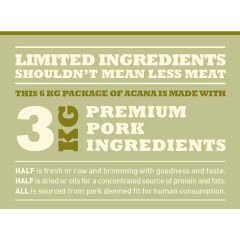 ACANA Yorkshire Pork %50 domuz ile sınırlı içerikli, tek, kolay sindirilebilir hayvansal protein içeren tüm ırk ve yaş evrelerinde beslenme hassasiyeti olan köpekler için ideal bir mamadır.