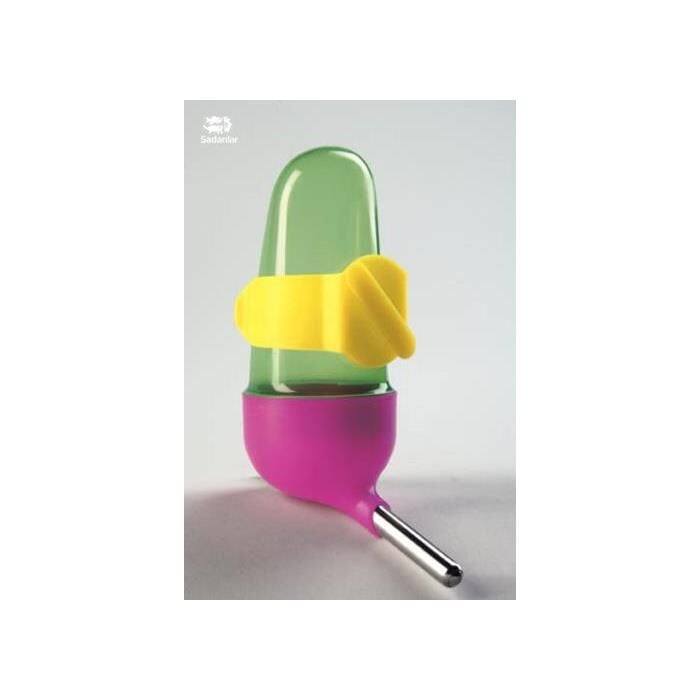 Kemirgenler için, ağzını dayadığında su akışına izin veren özel, bilyalı akış sistemiyle, kullanımı pratik, sürekli taze ve temiz su imkanı sağlayan, hijyenik, şeffaf, renkli plastik malzemeden, yıkanabilir, 100 ml hacminde kemirgen suluğu.