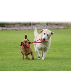 Büyük ırk yavru ve erişkin köpekler için ideal tutamaçlı ve sesli oyun topudur. Çok dayanıklı naylon örgü dağcı ipinin içinden geçtiği sesli Kong oyun topu, ergonomik tutamacı ile bir bütündür. Topun içerisindeki gizli düdükle çok kullanışlı, sesli bir oyuncaktır. Ürün çeşitli renklerdedir.