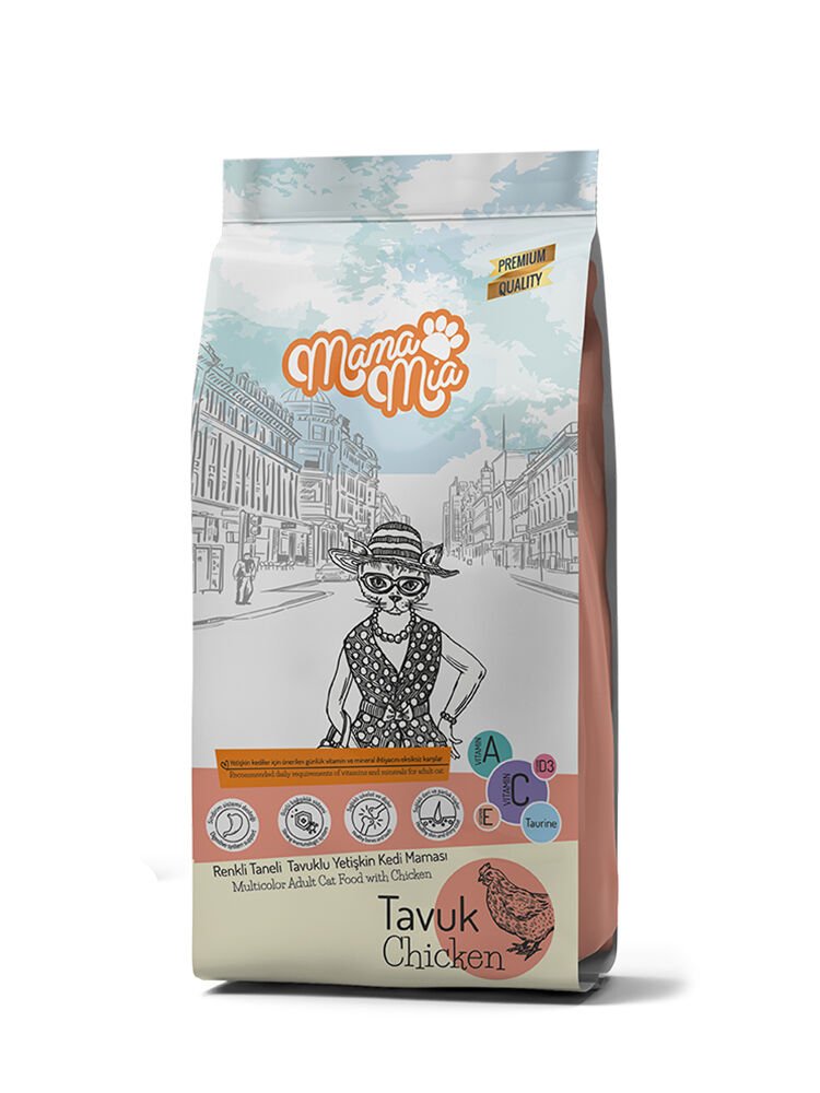 MamaMia Renkli Taneli Tavuklu Yetişkin Kedi Maması 15Kg